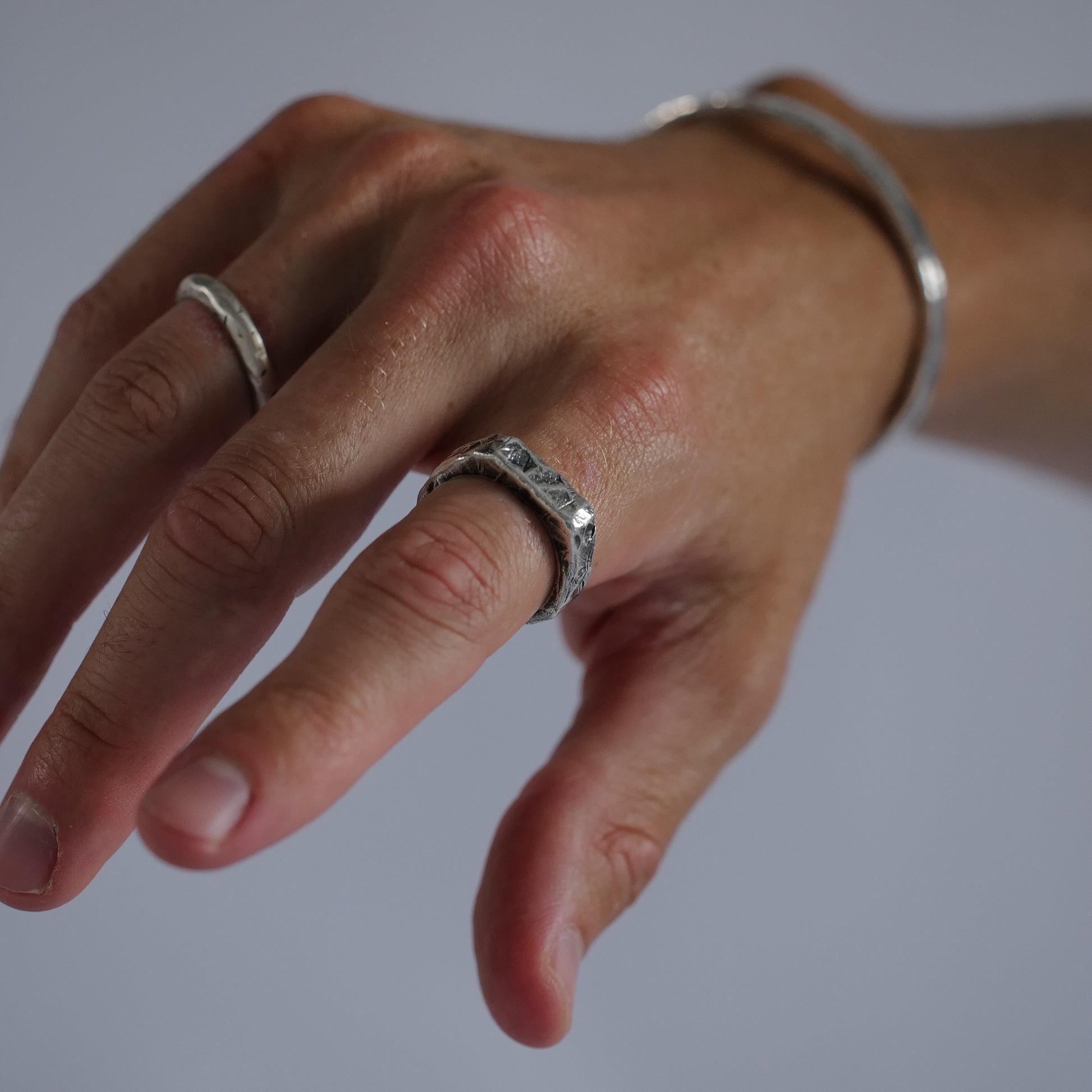 - Silver Finish Combined with a Subtle Oxidised Uneven Raw Texture