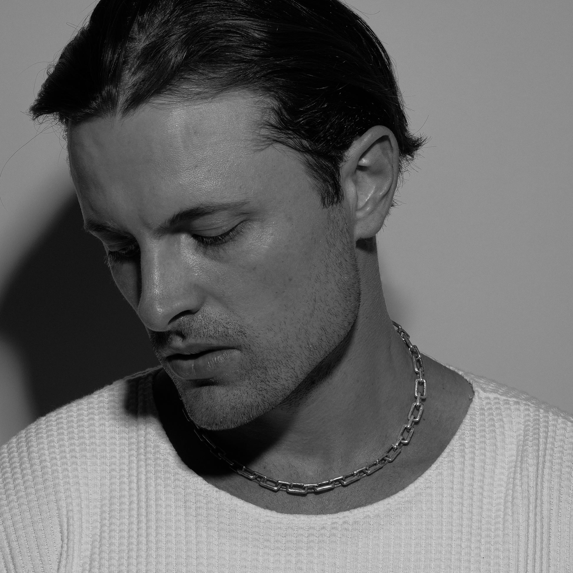 Complete your look with the Curtis Necklace, a vintage-inspired 925 sterling silver chain necklace designed with hand-etched detailing for a lived-in feel. Featuring varied chain links, this bold statement piece is handcrafted from recycled sterling silver and finished with a mix of oxidised and high-polished textures, enhancing depth and contrast.