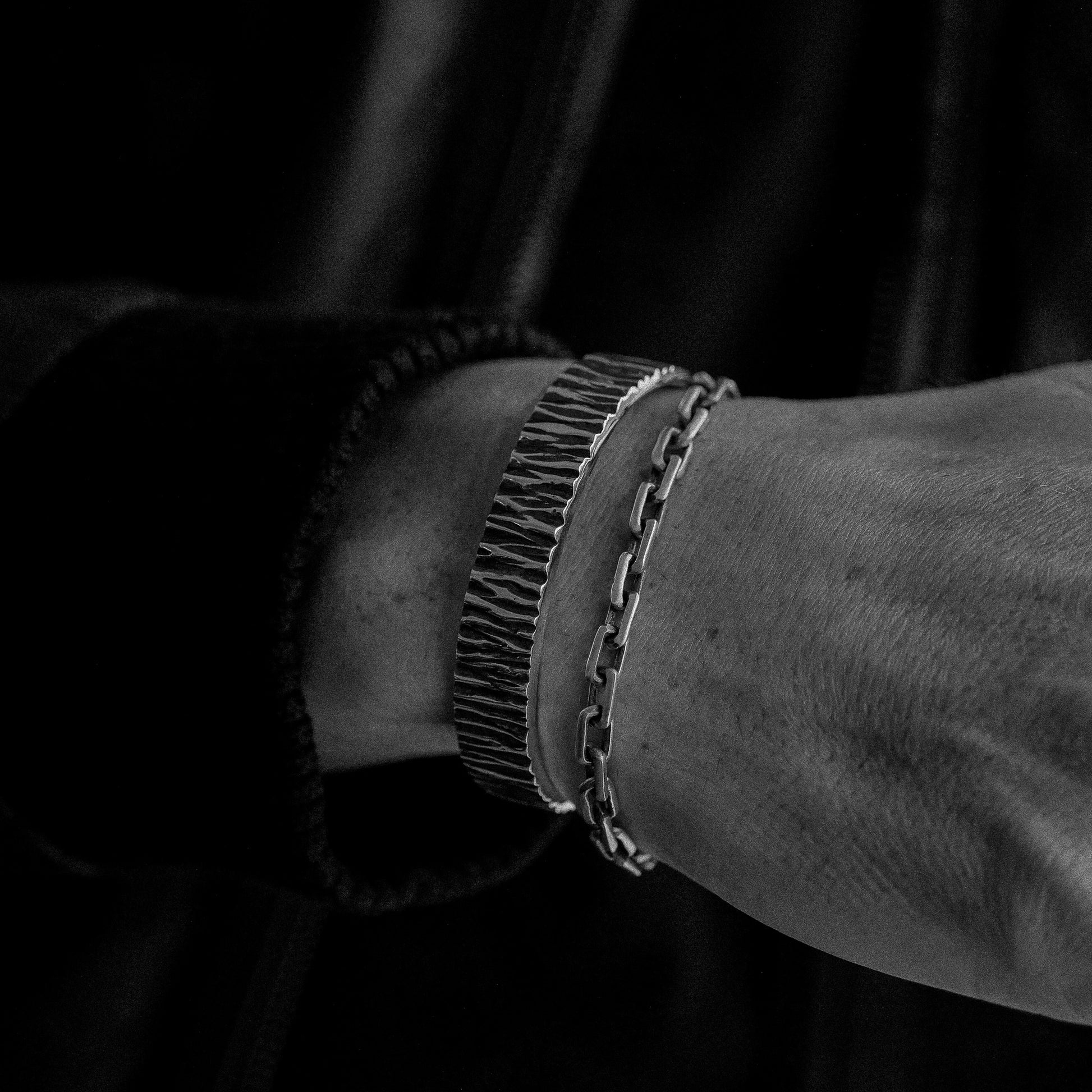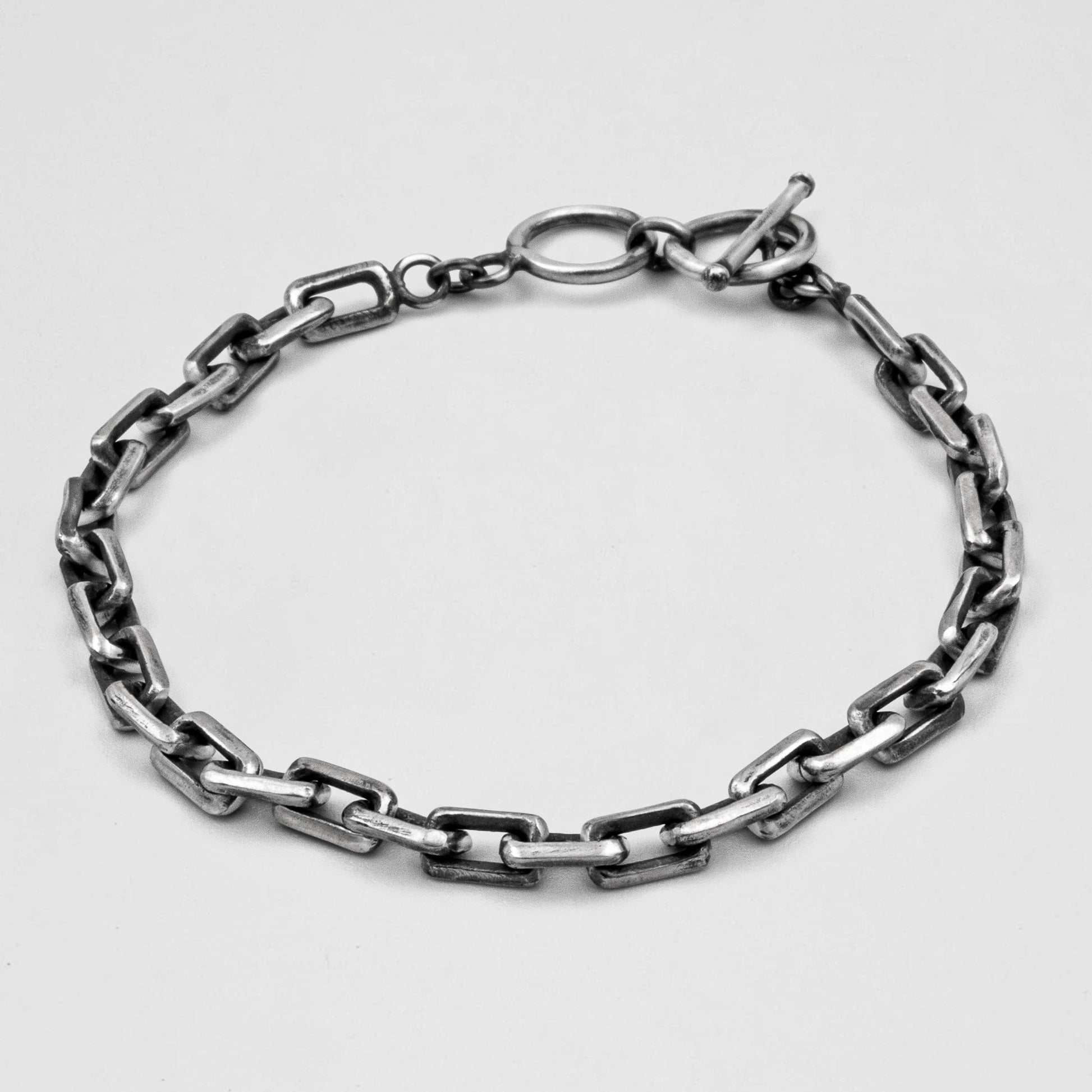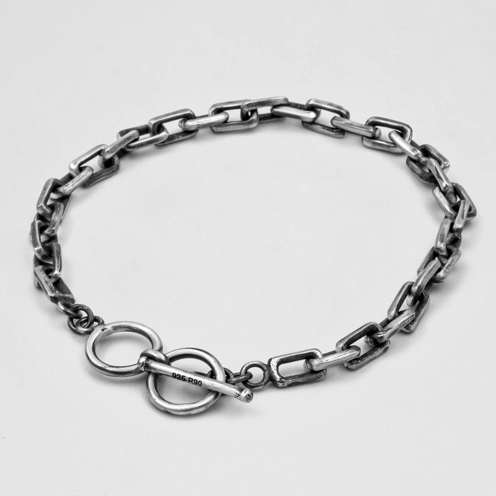 Individualistic, thoughtful and full of character; the Eugene chain features a T-Bar closure, making it easy to wear and remove with one hand. An adjustable length and aged finish to the 925 sterling silver lend a timeless charm to an otherwise rustic design.