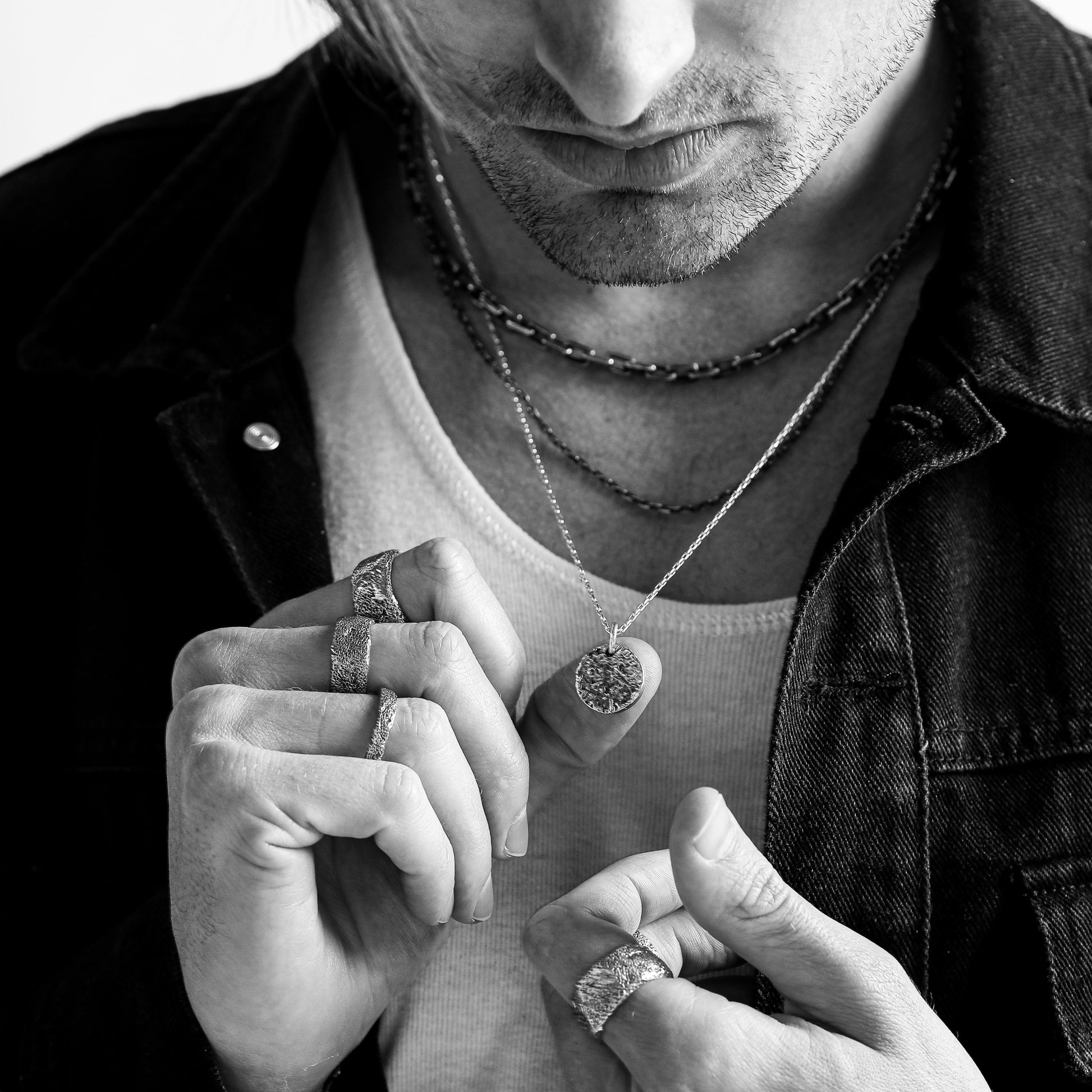 Featuring hammered detailing and an oxidised finish, the Martinez Pendant balances light with dark, adding depth and texture for easy styling. Intuitive craftsmanship and RAWNINETY's signature 925 sterling silver make this heirloom piece one for generations to come.