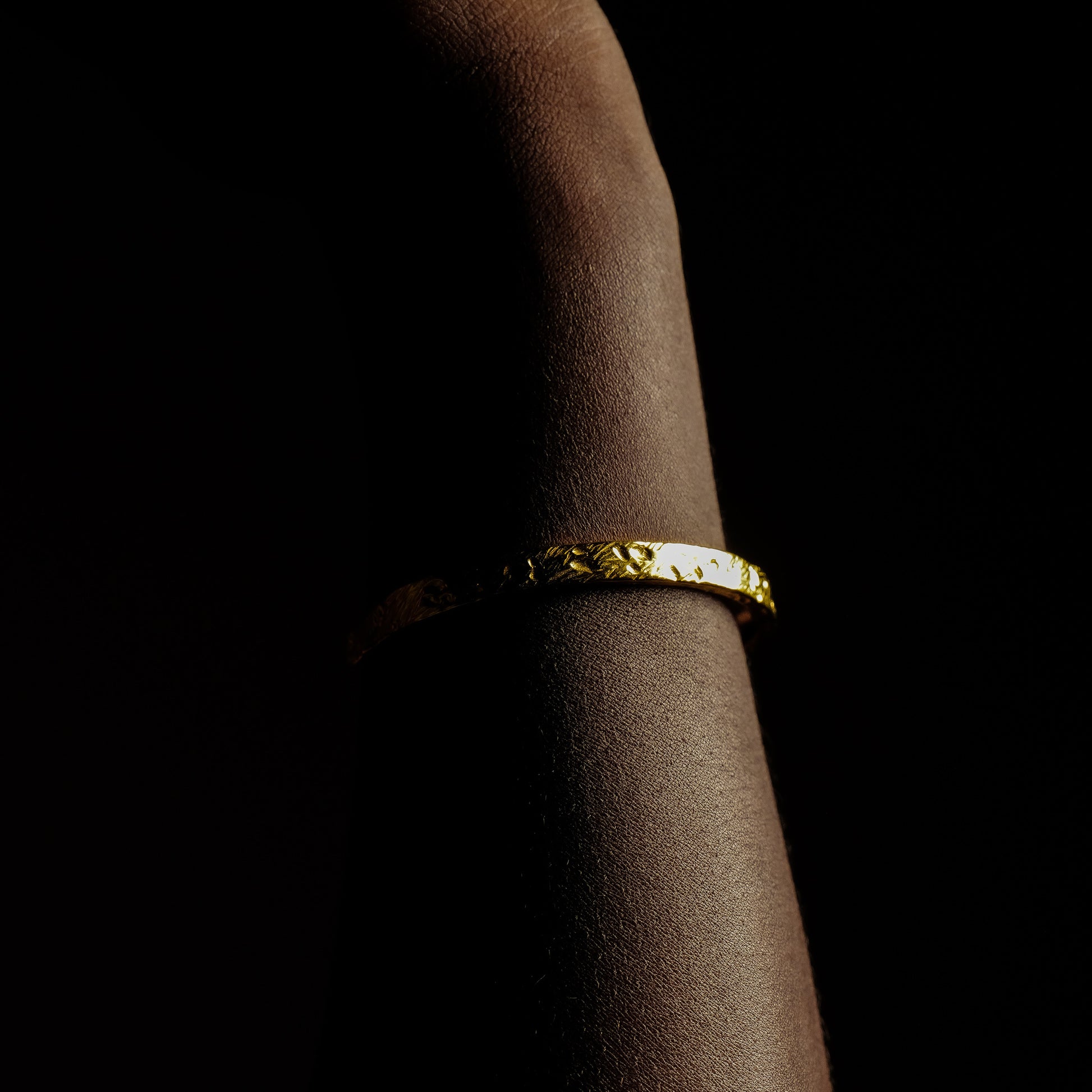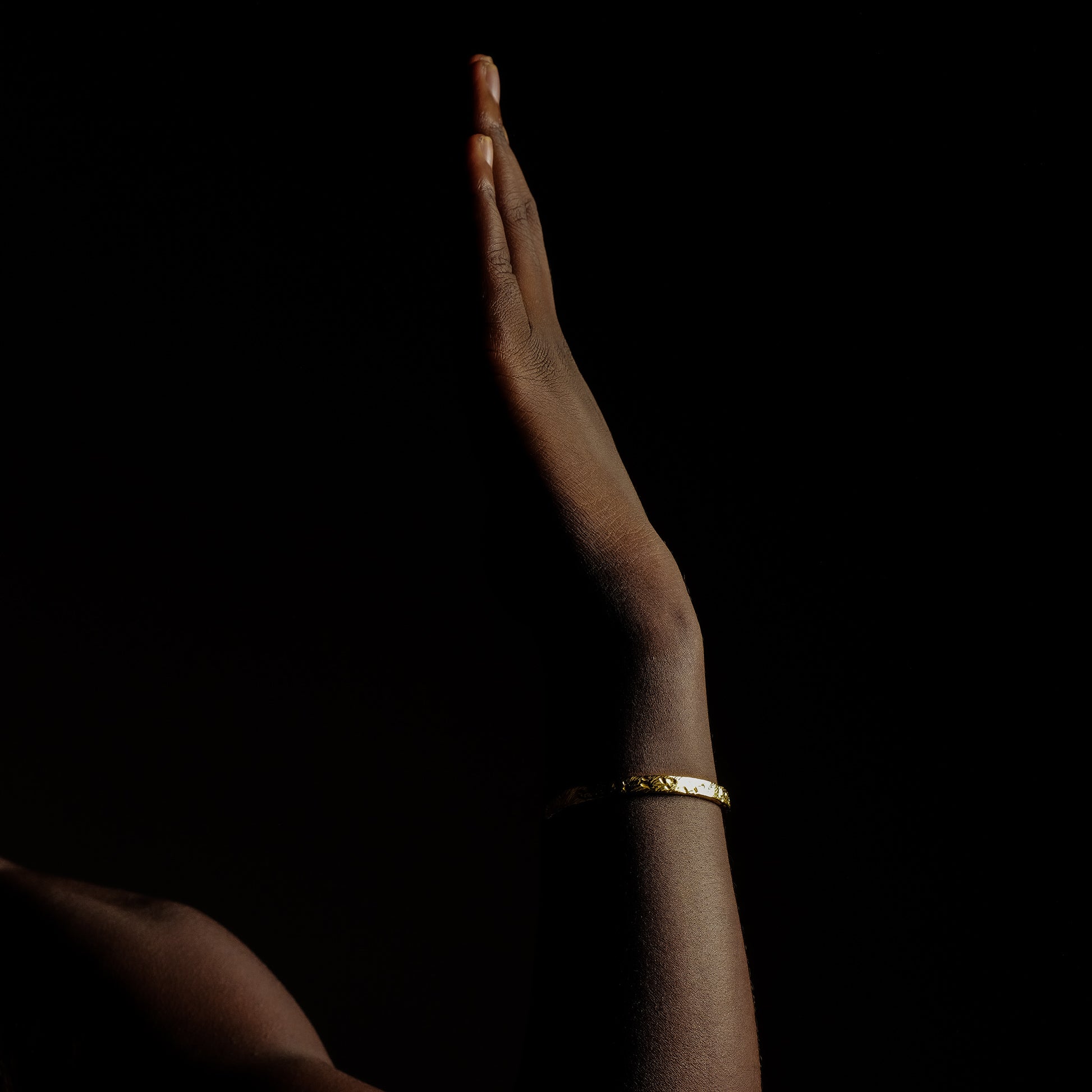 The Micky Cuff Gold: lightweight, elegant, and vintage-inspired, this cuff embodies meticulous craftsmanship and attention to detail. Crafted from recycled sterling silver and dipped in gold vermeil, its sandblasted details add a unique appeal. With an adjustable opening for a perfect fit, elevate your style with this timeless cuff.