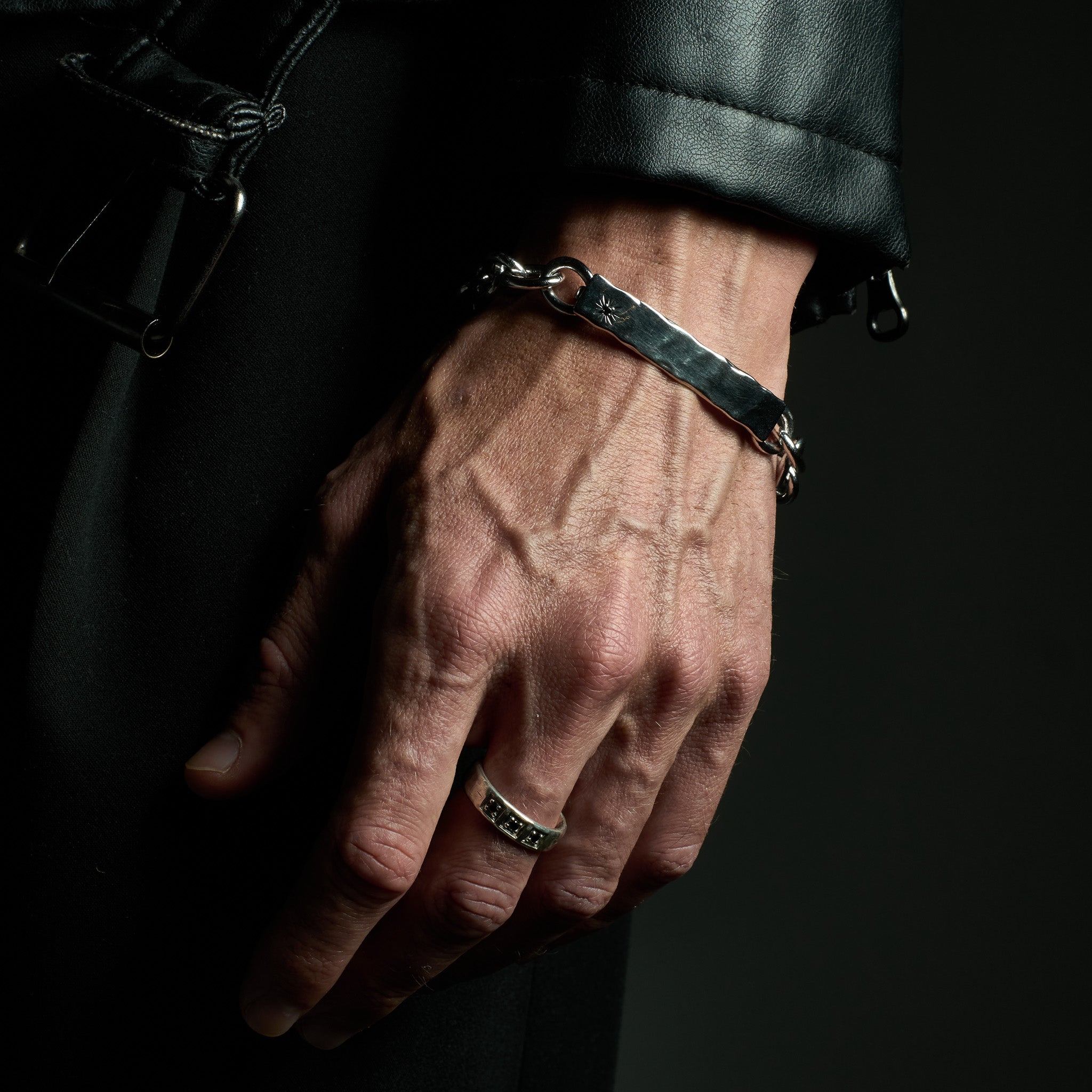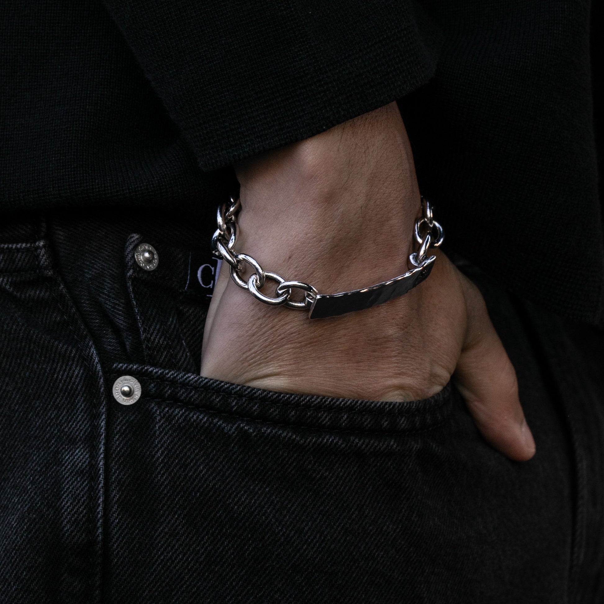 The Vergil Bracelet Chain is a men’s bracelet chain built for those who appreciate refined detail and unique minimalism. Handcrafted from solid recycled 925 sterling silver, the bracelet features a high-polished finish with subtle oxidisation and a hand-hammered texture for depth and contrast.