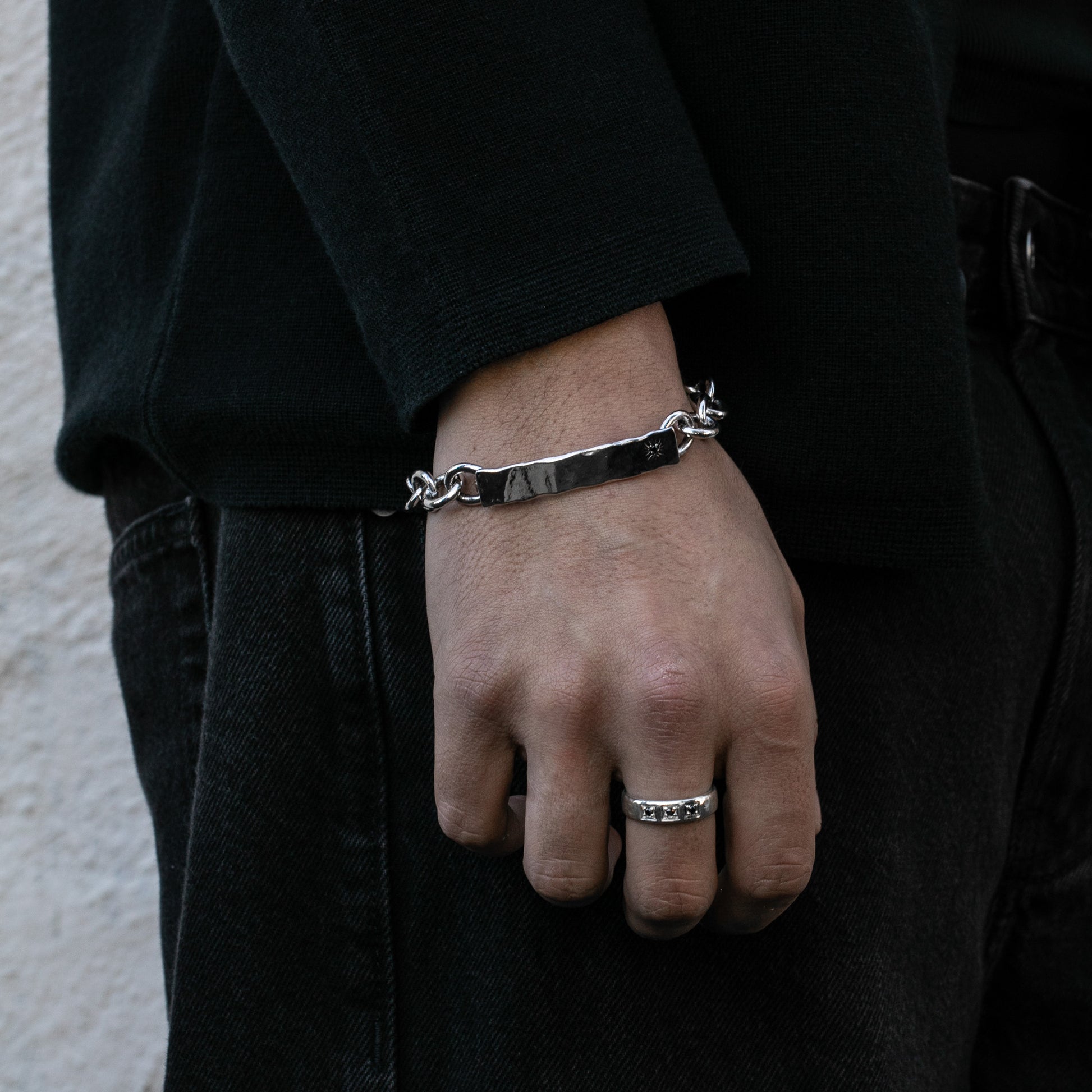 The Virgil Bracelet Chain is a men’s bracelet chain built for those who appreciate refined detail and unique minimalism. Handcrafted from solid recycled 925 sterling silver, the bracelet features a high-polished finish with subtle oxidisation and a hand-hammered texture for depth and contrast.